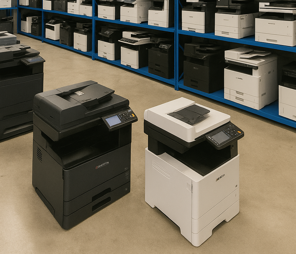 Des imprimantes A4 et A3, noir et blanc ou couleur, laser, des marques comme Develop, Konica Minolta et Brother.