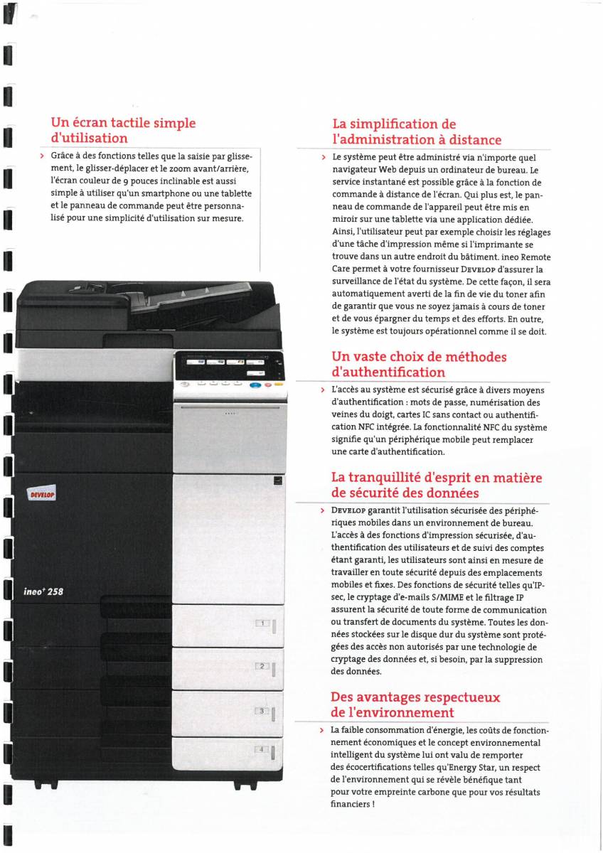 Ces imprimantes professionnelles sont d'une fiabilité remarquable... Très peu de bourrages papiers, qualité copie irréprochable, fonctionnalités intuitives... Ces atouts font de la marque Konica Minolta Develop l'une des plus célèbres sur le marché mondial.